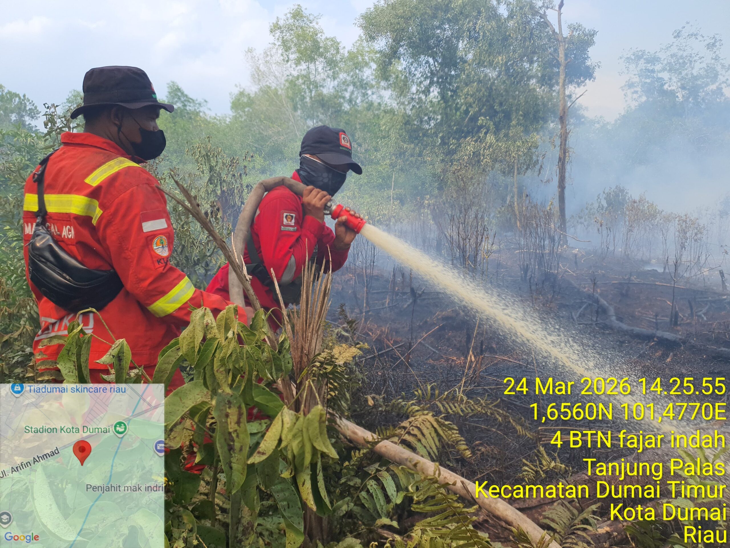 Proses pemadaman melibatkan berbagai unsur, di antaranya BPBD Kota Dumai, Manggala Agni dumai dan di bantu BKO Daops saik.daops labuhan batu.daops pekan baru, serta personel TNI dan Polri.MPA.masyarkat dalm pantauan media ini terlihat dari kesehtan turun lapgan yang bekerja secara terpadu di lapangan.