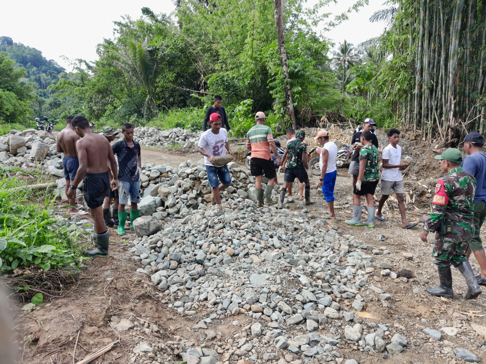 Wajah-wajah Lelah tetapi mengalahkan Semangat untuk menyelesaikan Pembangunan Jembatan, antusias warga itu seakan menggambarkan harapan besar akan hadirnya akses penghubung yang selama ini dinantikan. Bagi mereka, jembatan tersebut bukan sekadar infrastruktur, melainkan jalan menuju kemudahan beraktivitas, termasuk pergi ke antar Desa dan berinteraksi dengan warga di seberang.