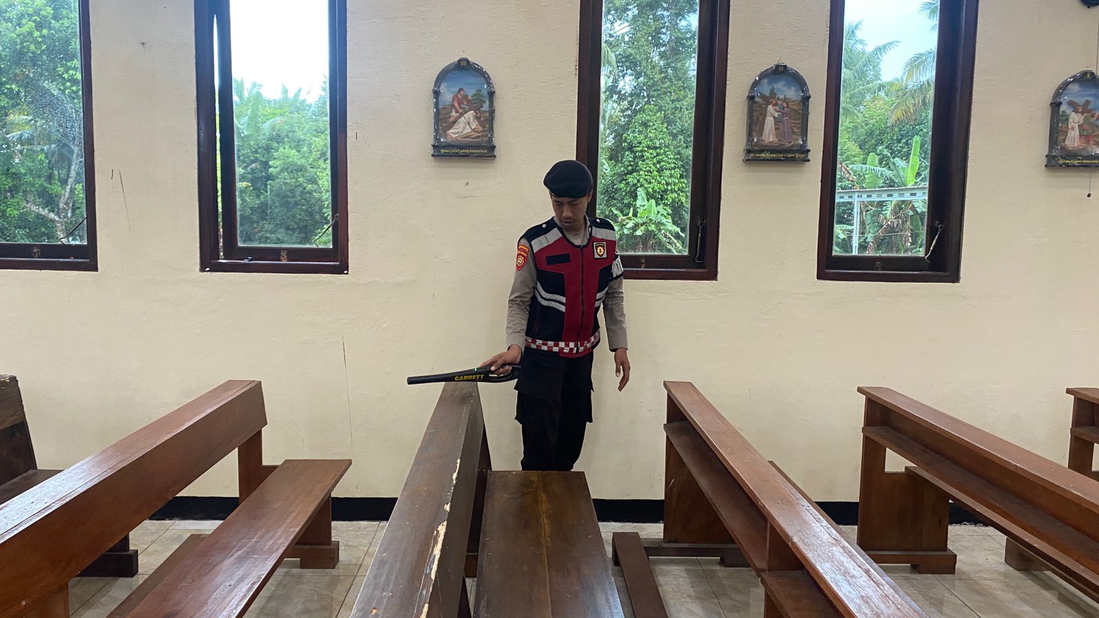 [HALSEL] – Polres Halmahera Selatan (Halsel) melakukan sterilisasi gereja untuk memastikan keamanan umat Kristiani selama ibadah Natal 2025. Tim Sterilisasi menyisir seluruh area gereja, memeriksa benda mencurigakan dan potensi gangguan keamanan. Pada Kamis, (25/12/2025).