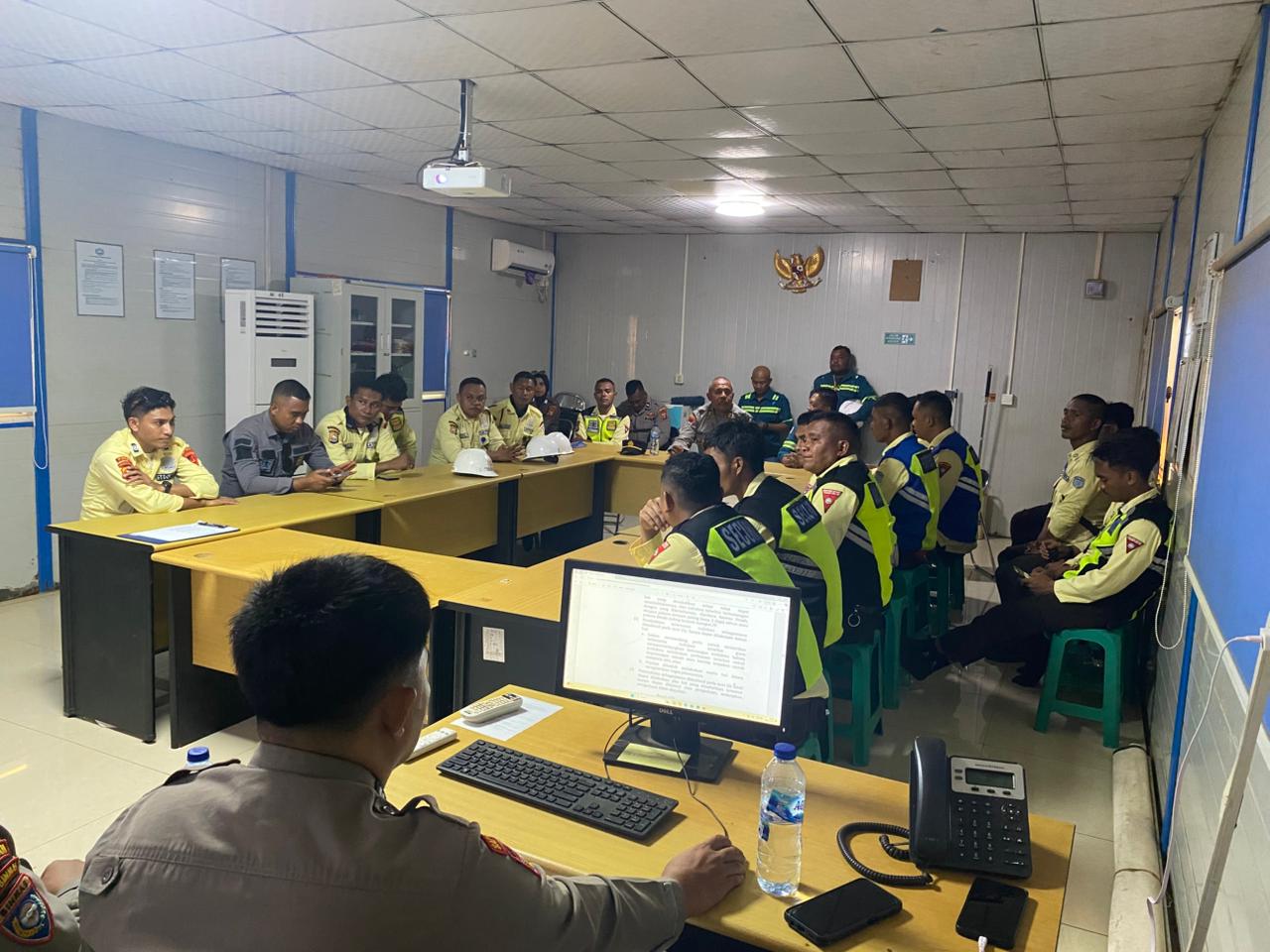 Kegiatan dilanjutkan dengan Sosialisasi Undang-undang nomor 1 Tahun 2023 tentang KUHP kepada personel Satuan pengamanan/Security yang bertugas di PT. Harita Group Desa Kawasi. Materi dibawakan langsung oleh Kasat Binmas Polres AKP Abdul Haris Alwan.